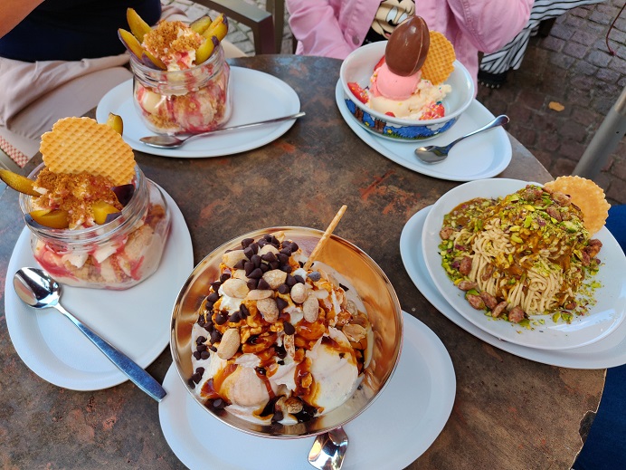 In der Kabine wurde, wie üblich, mit einer Flasche Sekt angestoßen und anschließend haben wir uns noch mit einem Eis belohnt!