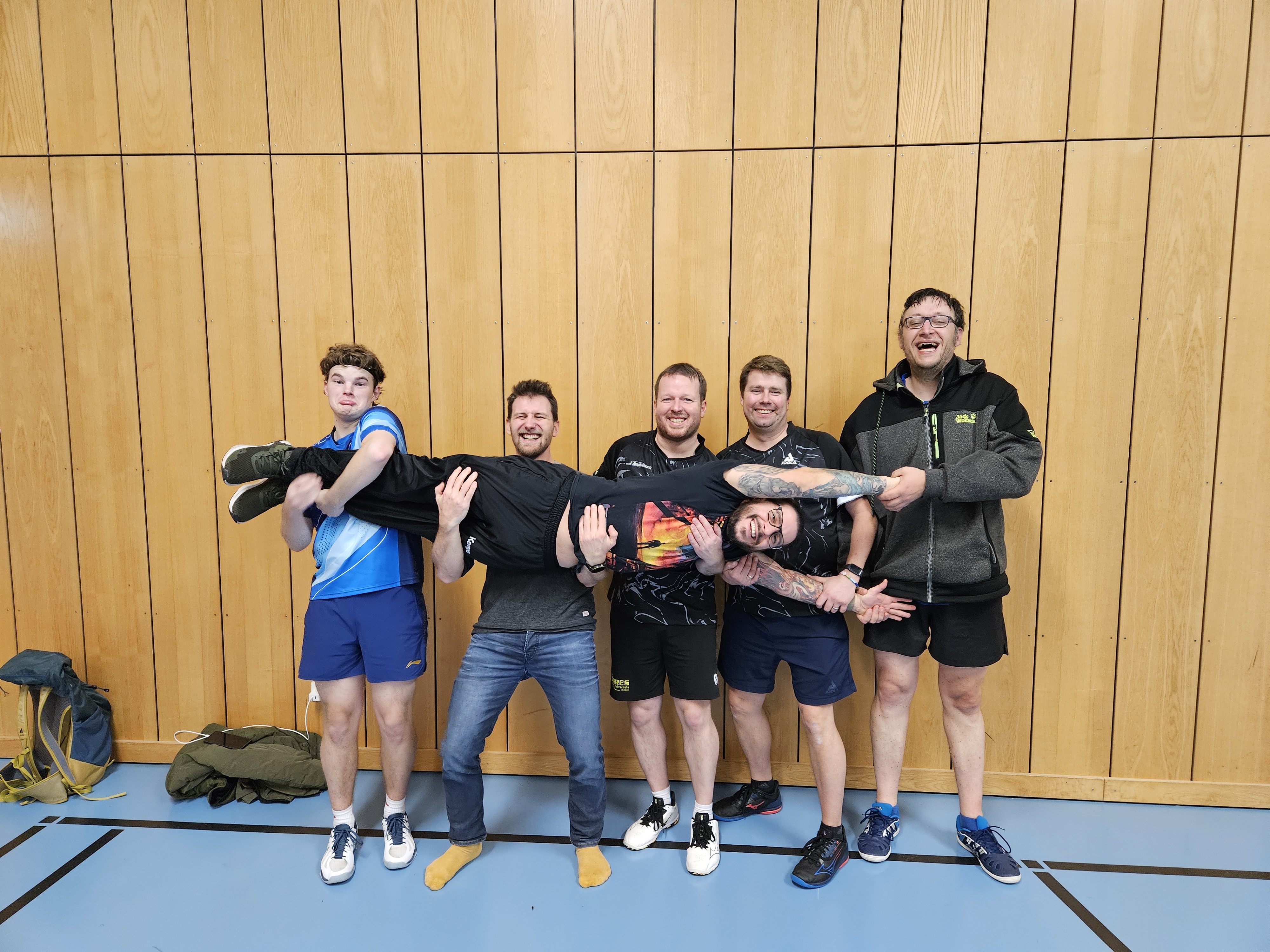 Dettelbach gab sich aber noch lange nicht auf, auch wenn kein Punkt mehr drin war. Der junge Maas zeigte sich spielfreudig gegen Steger, dem in der Verlängerung des dritten und vierten Satzes ein wenig Glück fehlte und er seinem Gegenüber gratulieren musste. Schüller kämpfte sich nach 0:2-Rückstand gegen Weimann eindrucksvoll in den Entscheidungssatz, musste sich dort aber 13:15 geschlagen geben. Im letzten Spiel des Abends unterlag Eichner einem stark aufspielenden Keller, auch weil die eigenen Offensivbemühungen häufig nicht den Weg auf des Gegners Plattenhälfte fanden. In Anbetracht des ersten Landesliga-Sieges allerdings mehr als verschmerzbar. Man of the Match war mit drei beigesteuerten Punkten und zwei gedrehten Partien im Einzel ganz klar Johannes Rauchmann.