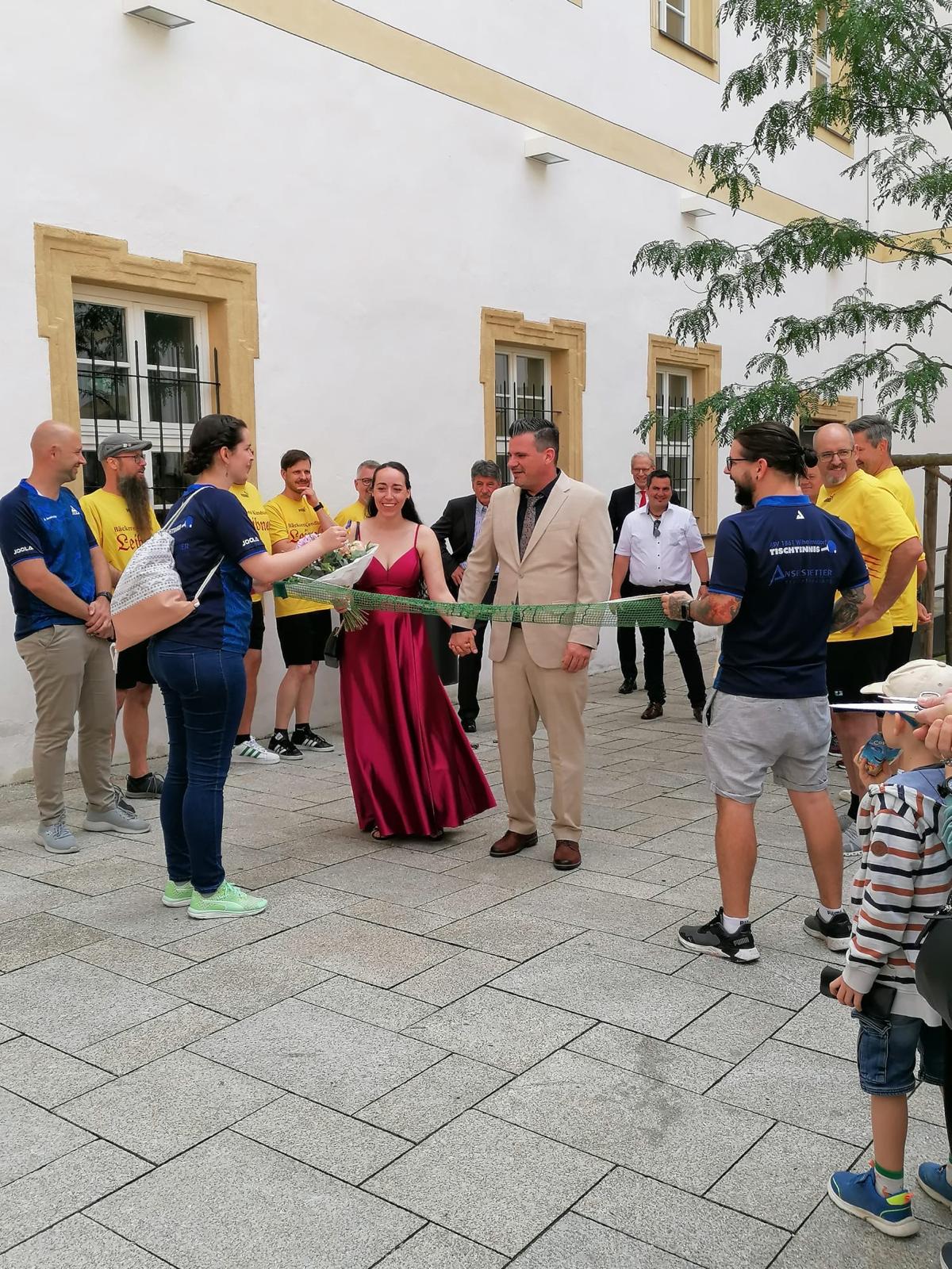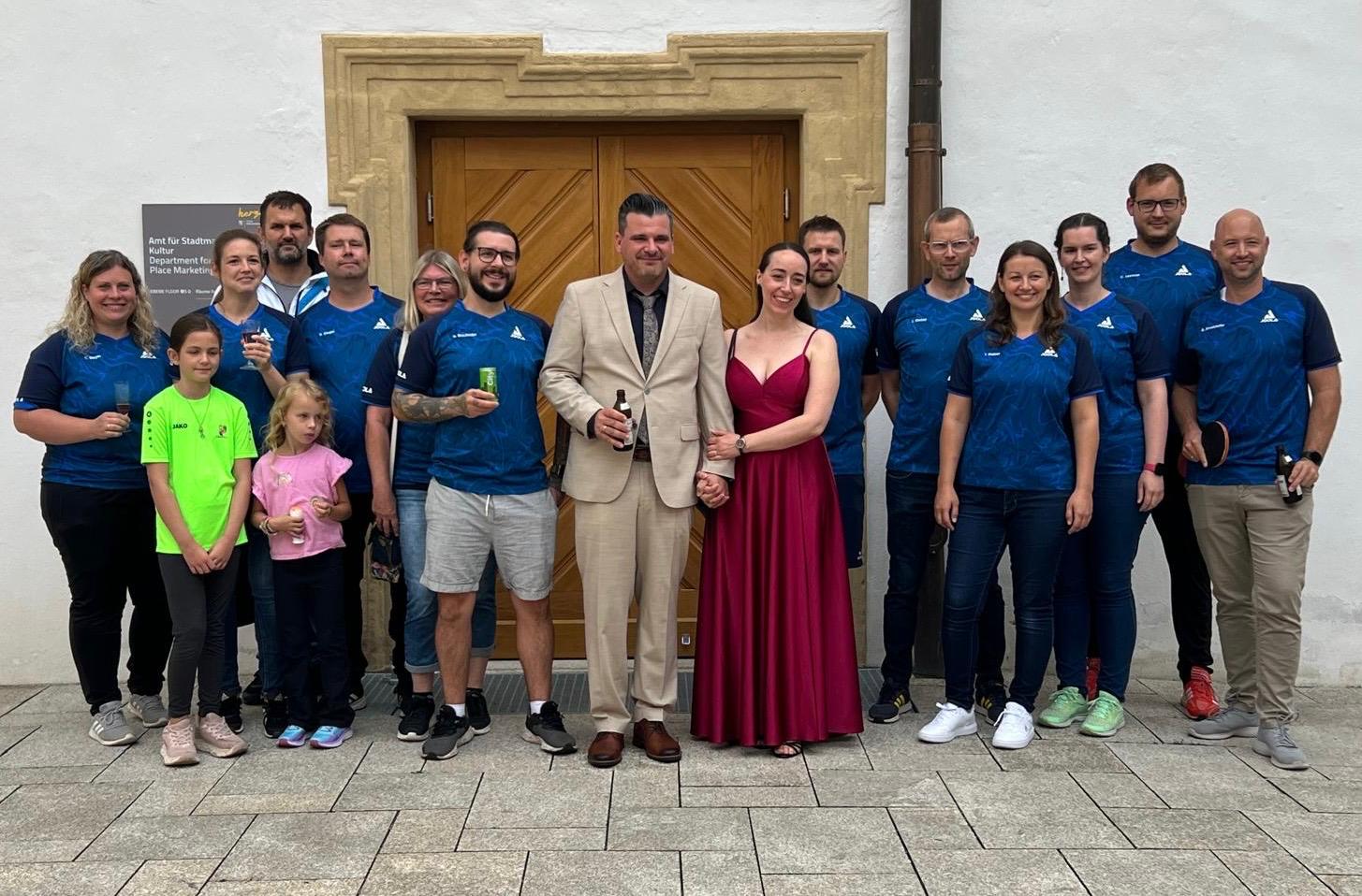 Am heutigen Samstag, 02.08.2025, trafen wir uns im schönen Herzogenaurach, um unseren langjährigen Tischtenniskollegen Armin Wohlleb und seiner Andrea zur standesamtlichen Hochzeit zu gratulieren.