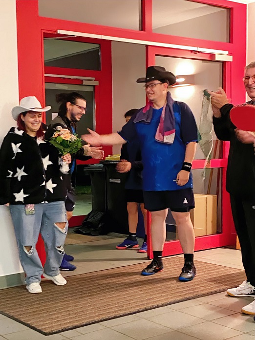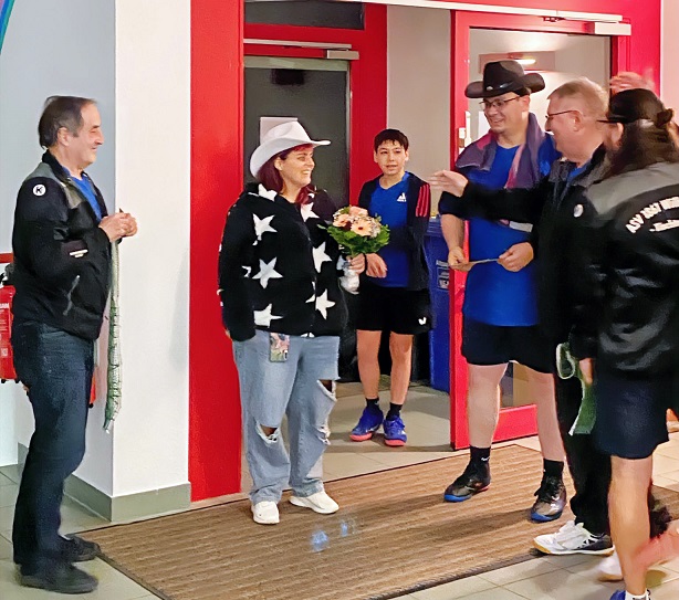 Anlässlich eines Heimspieles unserer dritten Mannschaft, für die Stefan momentan an die Platte tritt, kam es am 08.11.2024 zu einem Novum in der ASV-Geschichte: Einem Spalierstehen im Eingangsbereich der Hugenottenhalle.