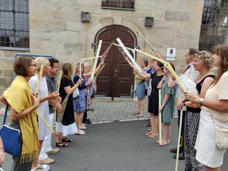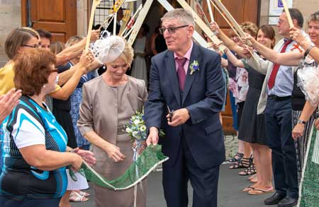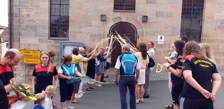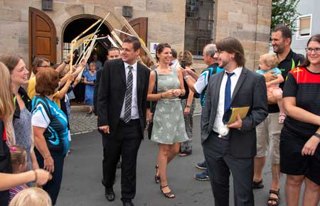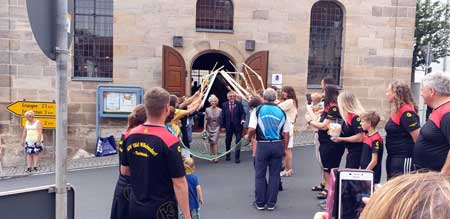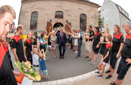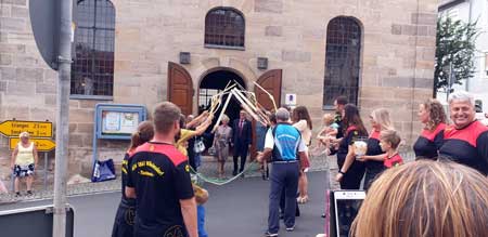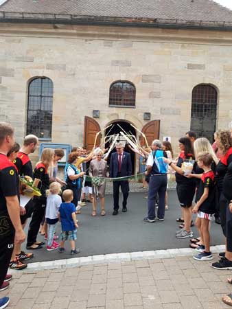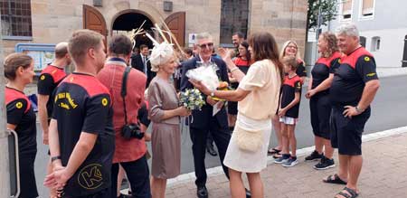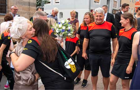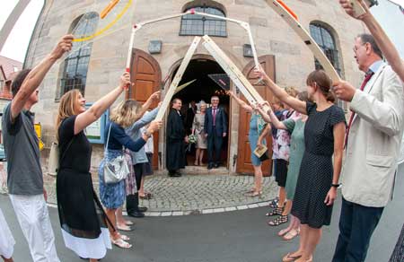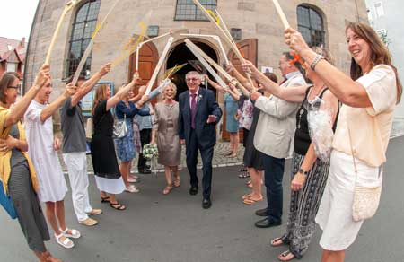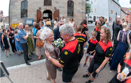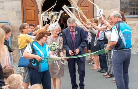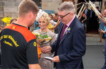 Am 27.07.2019 gaben sich unser ehemaliger Sportbereichsleiter und langjähriger Kreisvorsitzender Roland und seine Evi das "Ja-Wort". Viele Tischtennisler und auch viele Lehrer von Rolands Schule in Wilhermsdorf erwarteten die beiden nach ihrer Trauung in der Hugenottenkirche, um sie durch ein "Spalier" zu ihrer Feier zu geleiten.