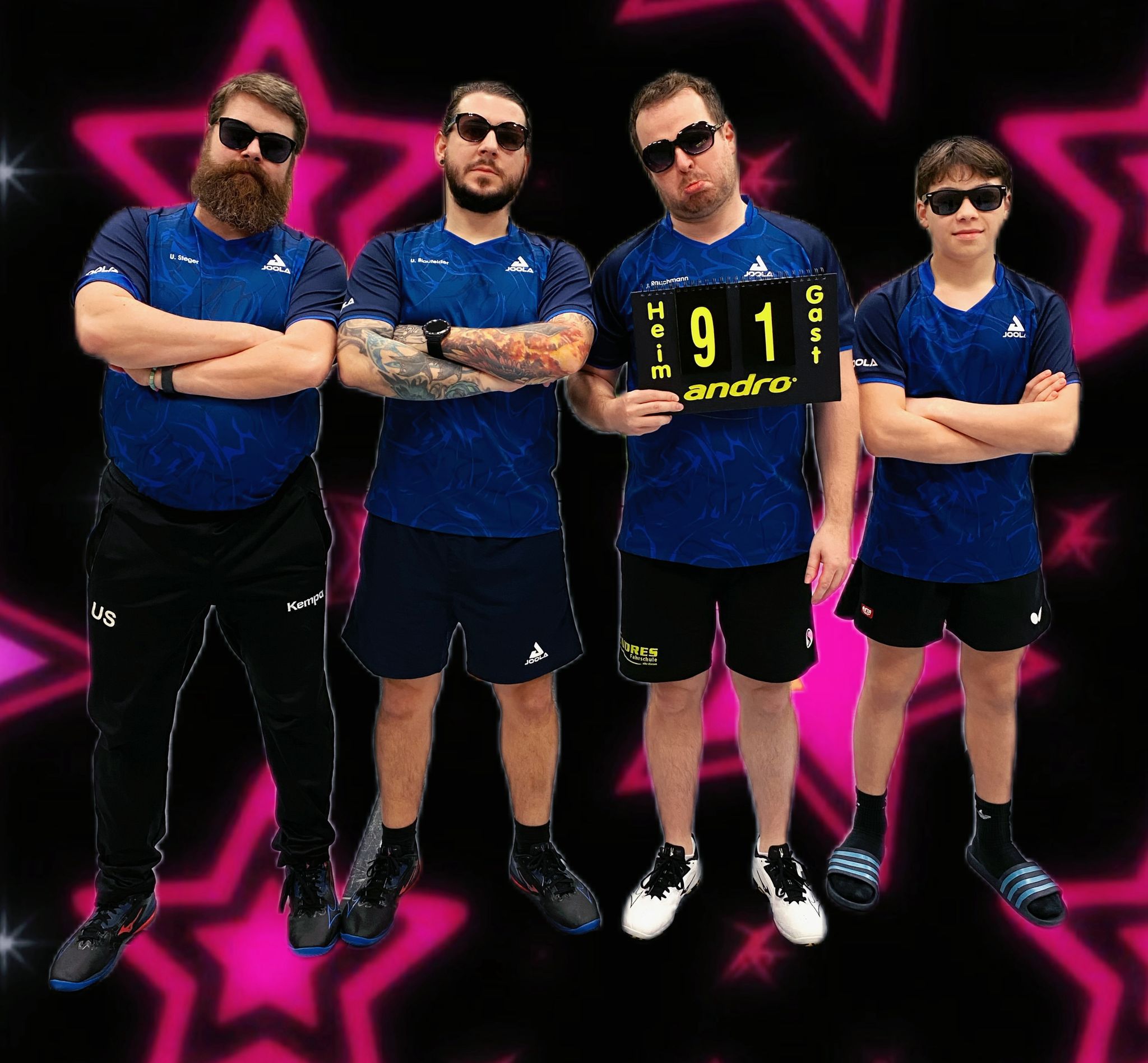 Westphal bekam es mit Hofmockel zu tun. Das quirlige ASV-Juwel bot starke offensiv-Aktionen, denen Hofmockel sehenswerte Schnittabwehr entgegensetzte. Ab und zu streute der Gästeakteur auch, physikalisch schwer nachvollziehbare, Vorhand-Topspins ein, teilweise wurde die Rückhand kilometerweit umlaufen. Nichtsdestotrotz sicherte sich Westphal die Sätze 1 und 2 in der Verlängerung, konnte seine Aufholjagd in Satz 3 allerdings noch nicht belohnen. Satz 4 brachte, durch eine der konsequentesten Saisonvorstellungen, die Entscheidung für den ASV. Rauchmann bekam es mit dem rekonvaleszenten Böhmländer zu tun. Das Potential des Gästeakteurs lässt sich bei 0 Trainingseinheiten im letzten halben Jahr nur erahnen, dennoch vermochte er Rauchmann einen Satz abzunehmen. Bemerkenswert war der vorletzte Punkt in Satz 4, als Rauchmann auf einen around-the-net Vorhand-Topspin eine dermaßene Rückhand-Peitsche folgen ließ, dass, das Publikum schier ausflippte. Steger fokussierte sich gegen Sauerhammer auf eine seiner Kernkompetenzen: viel Messer von hinten geben. Sauerhammer zeigte durchaus besorgniserregende Ansätze, musste sich schlussendlich aber deutlich dem Abwehrtank Stegisaurus geschlagen geben. Im Duell Langnoppe (Blaufelder) gegen Kurznoppe (Frey) sicherte sich Blaufelder einen 3:0 Erfolg, wobei vor allem die Verlängerung von Satz 3 mehr als glücklich für den Heim-Kapitän verlief.
