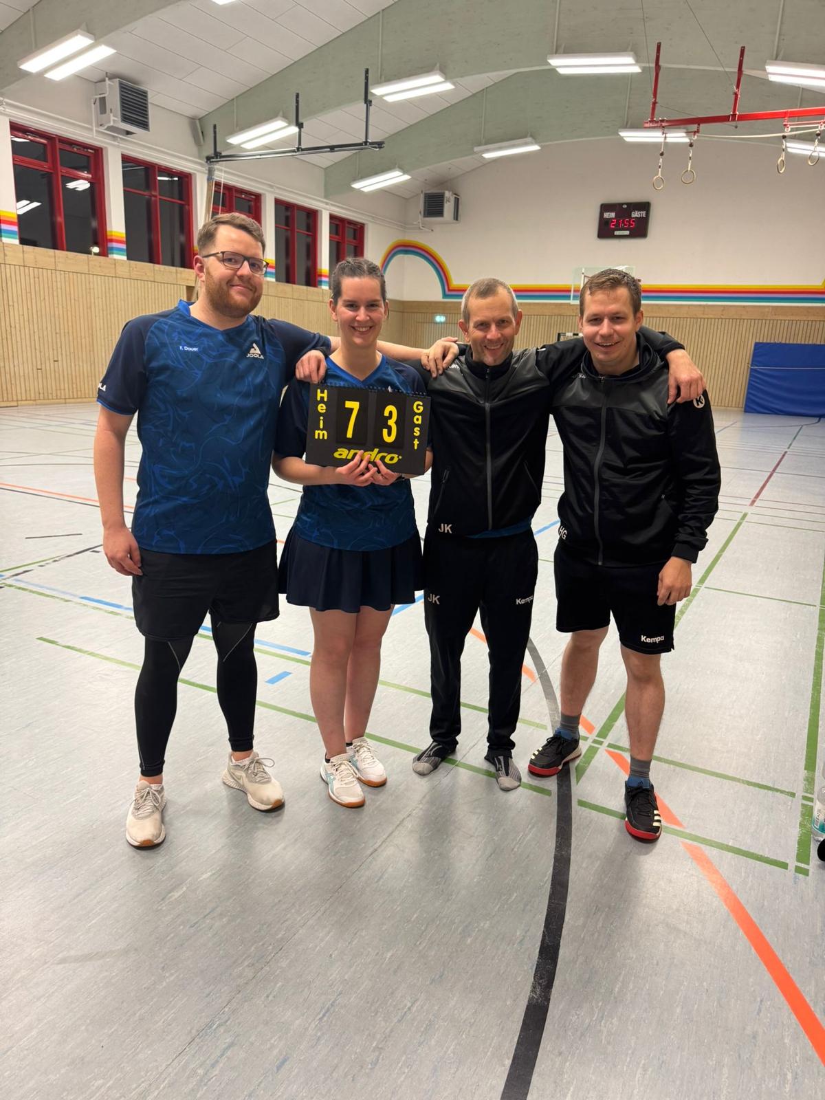 Harry und Anne überließen es Nils Fehler und Markus Franke, die Fehler zu machen und gewannen ihr Doppel mit 3:0, während am Nachbartisch der Sieg zunächst stark umkämpft war. Nach einem 1:2-Rückstand kämpften sich Flo und Joachim gegen Herbert Endreß und Frank Fehler jedoch zurück und drehten die Partie. Mit dem 3:2-Sieg und 2:0 Führung ging es für alle ASV-Akteure motiviert in die Einzel. Harry, Flo und Anne mussten jedoch trotz starker Spiele ihren Gegnern gratulieren. Einzig Joachim konnte aus der ersten Einzelrunde gegen Markus Franke einen Punkt mitnehmen. Der Zwischenstand war also 3:3. Voller Ehrgeiz und Motivation ging es in die zweite Einzel-Runde, welche von allen vier ASV-Akteuren souverän mit 3:0 gewonnen wurden. Endergebnis: 7:3 für den ASV IV! 🥳