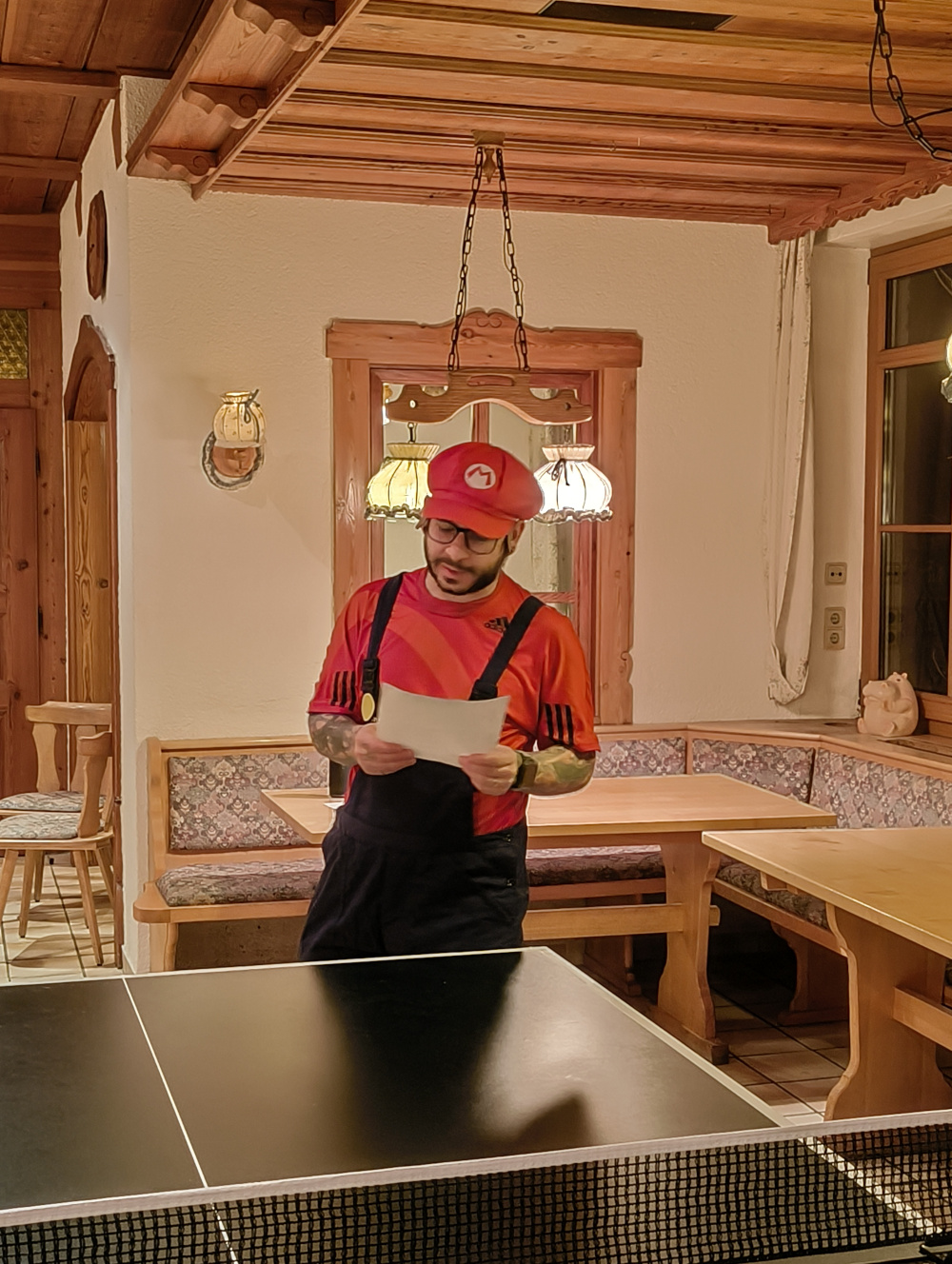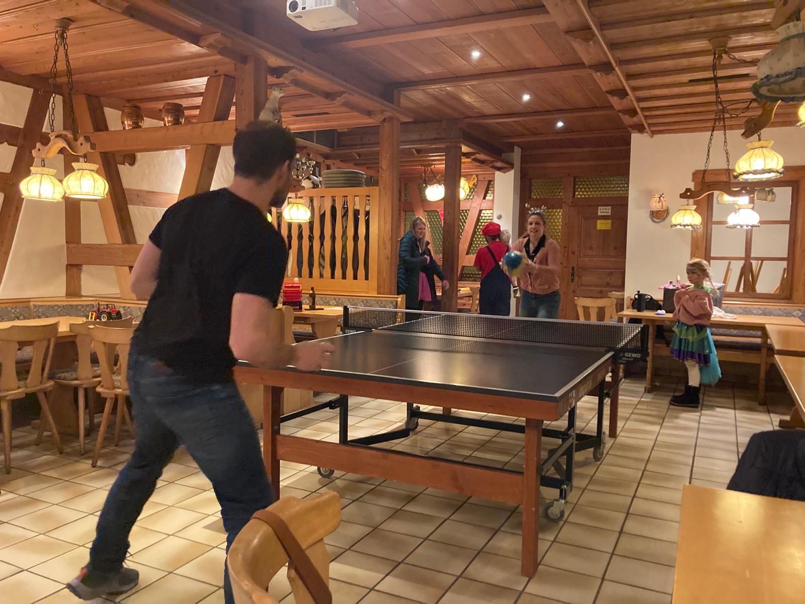 Am Rosenmontag, den 16.02.2026, trafen sich einige Tischtennisspieler in der ASV-Sportgaststätte zum traditionellen Faschingstischtennis. Los ging es auch in diesem Jahr bereits um 17 Uhr. In lockerer Atmosphäre wurde Pizza gegessen und Tischtennis gespielt. Allerdings, wie in jedem Jahr, nicht mit einem Tischtennisschläger, sondern mit irgendwelchen mitgebrachten Gegenständen. So sah man z. B. einen Volleyball, ein Kissen, ein Bierfilzla, einen Geldbeutel und noch einiges mehr.