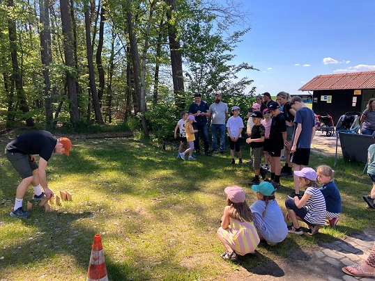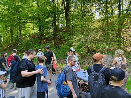 Bei strahlendem Sonnenschein und angenehm warmen Temperaturen machten sich insgesamt 43 Teilnehmer, darunter 20 Kinder, auf den Weg vom Bonnet-Haus in Wilhelmsdorf zum Geyer Felsenkeller in Oberreichenbach. Zu Beginn begrüßte Lukas alle Anwesenden herzlich und stimmte die Gruppe auf den bevorstehenden Ausflug ein.