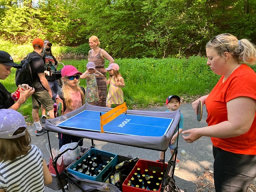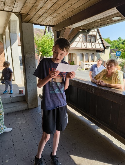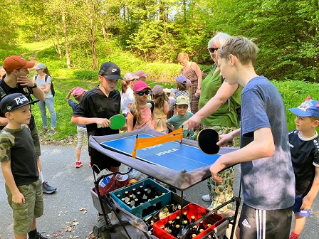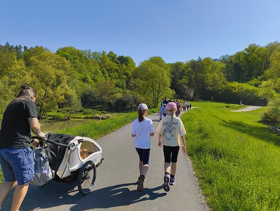 Die Route führte über den malerischen Richtersgraben und durch Ebersbach, sodass die Wanderer die Natur in vollen Zügen genießen konnten. Unterwegs sorgten ein paar Rätsel für Freude bei den Kindern. Diese wurden vom Osterhasen gestellt, der auch fleißig Süßigkeiten versteckt hatte. Zudem wurde spontan eine Partie Mölkky gespielt, die für zusätzliche Unterhaltung sorgte.