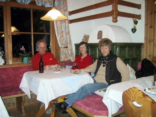 Am Kachelofen ist es schön warm: Dieter, Friederike und Hildegard.