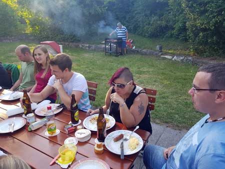 Sommerzeit ist Grillzeit! Das ließen sich die Tischtennisler des ASV nicht zweimal sagen. Bei hochsommerlichen Temperaturen wurde das diesjährige Sommerfest an der Hugenottenhalle gefeiert. Neben Köstlichkeiten vom Grill gab es auch leckere Salate und natürlich auch eine Nachspeise. Nachfolgend ein paar Schnappschüsse.