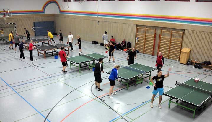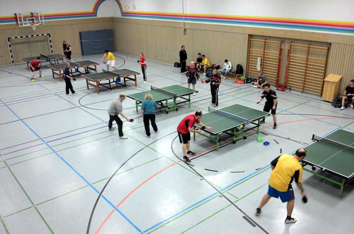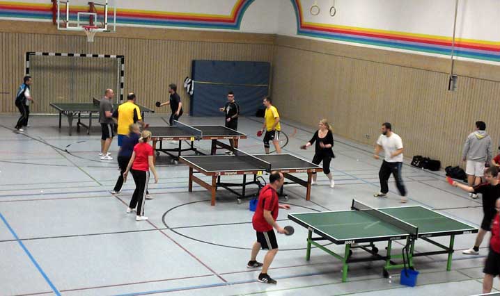 Beim ersten Training im Jahre 2014 platzte die Hugenottenhalle aus allen Nähten. Sogar die kleine Halle musste mit Platten bestückt werden. Mehr als 25 Aktive des ASV hatten sich zum Trainingsauftakt eingefunden.