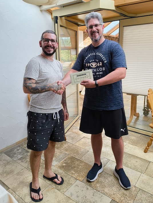 Ein Essensgutschein ging an Oliver Lang als Dankeschön für die Erstellung und Betreuung der neuen Homepage der Abteilung.