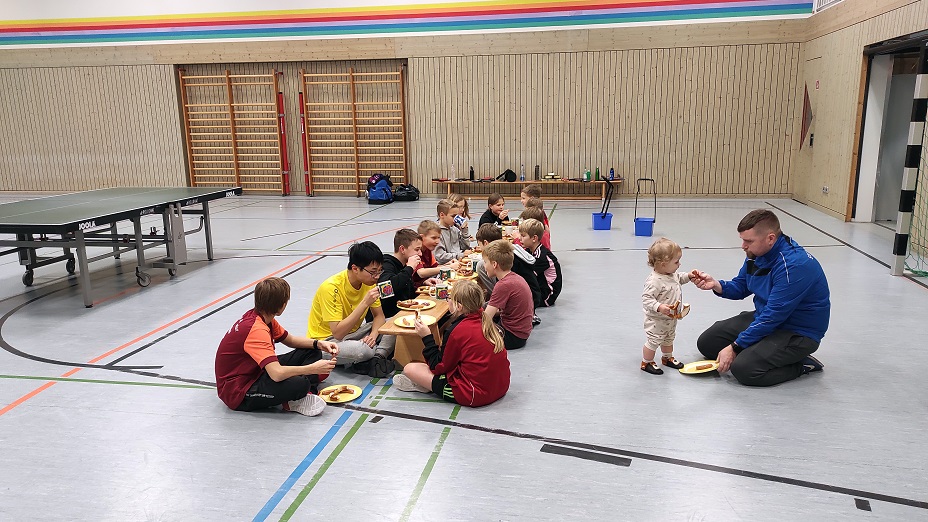 Begonnen haben wir, wie bei jedem Dienstagstraining, klassisch mit dem Aufwärmen, gefolgt von einem lustigen Teamspiel an einer großen Platte. Die Kinder hatten jede Menge Spaß und Abwechslung. Danach gab es zur Stärkung Wienerle mit Brezen und als Durstlöscher hatten wir Kinderpunsch vorbereitet. Zum Schluss gab es noch einen weihnachtlichen Nachtisch: kleine Lebkuchen.