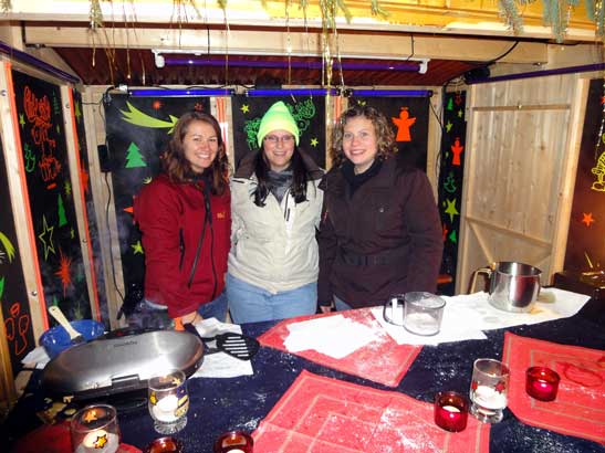 Am Stand der Tischtennisler verkauften Regine, Ingrid und Carina Waffeln und Hüttentee.