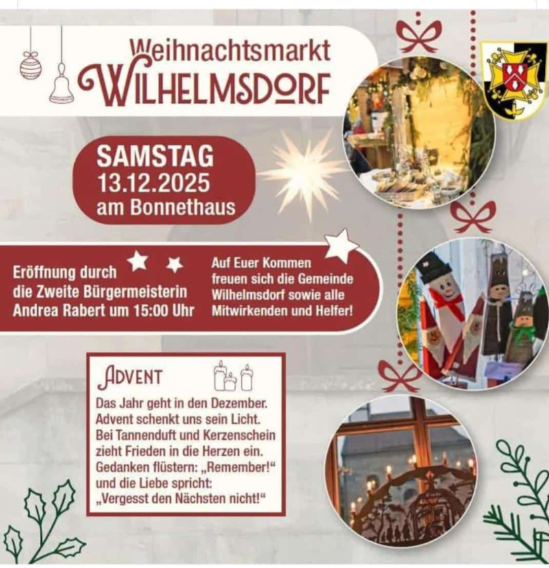 Am Samstag, 13. Dezember 2025, vor dem dritten Advent, fand der Wilhelmsdorfer Weihnachtsmarkt statt.