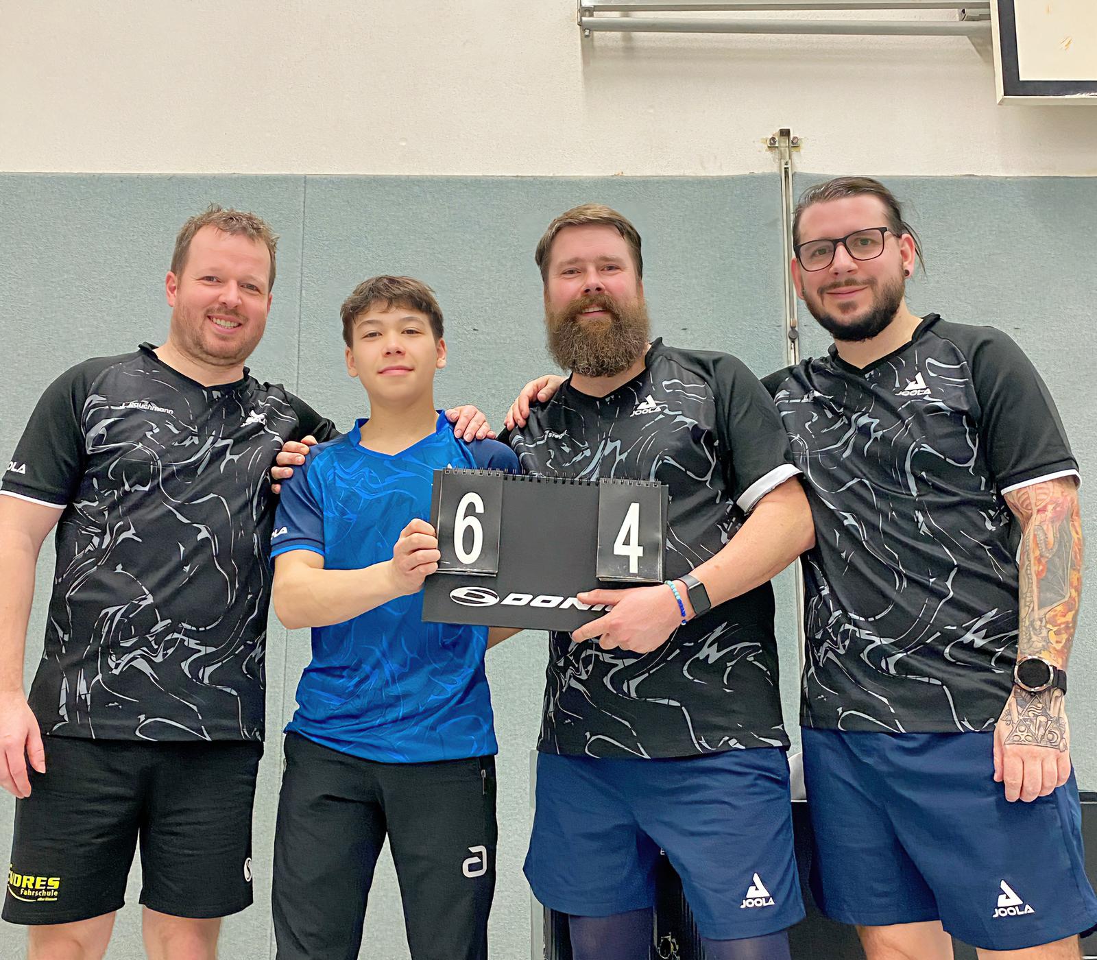 Nach zwei Sätzen, in denen Rauchmann seine Ratzenfänger-Flöte ausgepackt hatte, kippte die komfortable 2-0 Führung. Habermann startete hochkonzentriert in Durchgang 3 und dominierte den 4ten fast nach Belieben. Doch ganz gekippt war das Spiel noch nicht. Rauchmann konnte Tempo, Härte und Platzierung noch einmal entscheidend anziehen und gewann den Entscheidungssatz. Westphal geriet gegen den Abwehrsicheren und geschickt gegenschießenden Kalpkirmaz, ebenfalls nach 2-0 Führung, in Satz 3 ins Straucheln. Er konnte einige Satzbälle entschärfen und auf 3:1 für den ASV stellen. Ein gut aufgelegter Bartonitz lies das Störspiel von Blaufelder, mit einem Mix aus Ballonabwehr und harten ersten Topspins, nicht zur Entfaltung kommen und erzielte den Anschlusspunkt für den TV. Steger hatte gegen den blocksicheren, agilen Gründel große Mühe Satz 1 zu behaupten. In den beiden Folgesätzen albatrierte (abgeleitet von der Albatross-artigen Topspin-Haltung des ASV-Urgesteins) Steger mehr und mehr erste Offensiv-Bälle unblockbar und stellte den 2 Punkte Vorsprung wieder her.