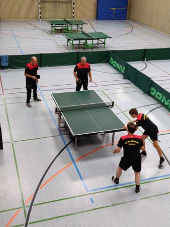 Am 1. Spieltag der Saison 2019/20 kam es in der Bezirksliga Gruppe 1 West zum Lokalderby Herren 1 gegen Herren 2. Krankheitsbedingt fehlten in der Ersten Gabor und in der Zweiten Alex. Sie wurden von Maxi und Roland vertreten. Am Ende gab es einen standesgemäßen 9:2-Sieg der 1. Mannschaf