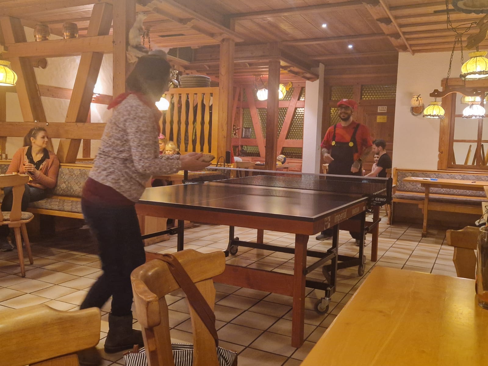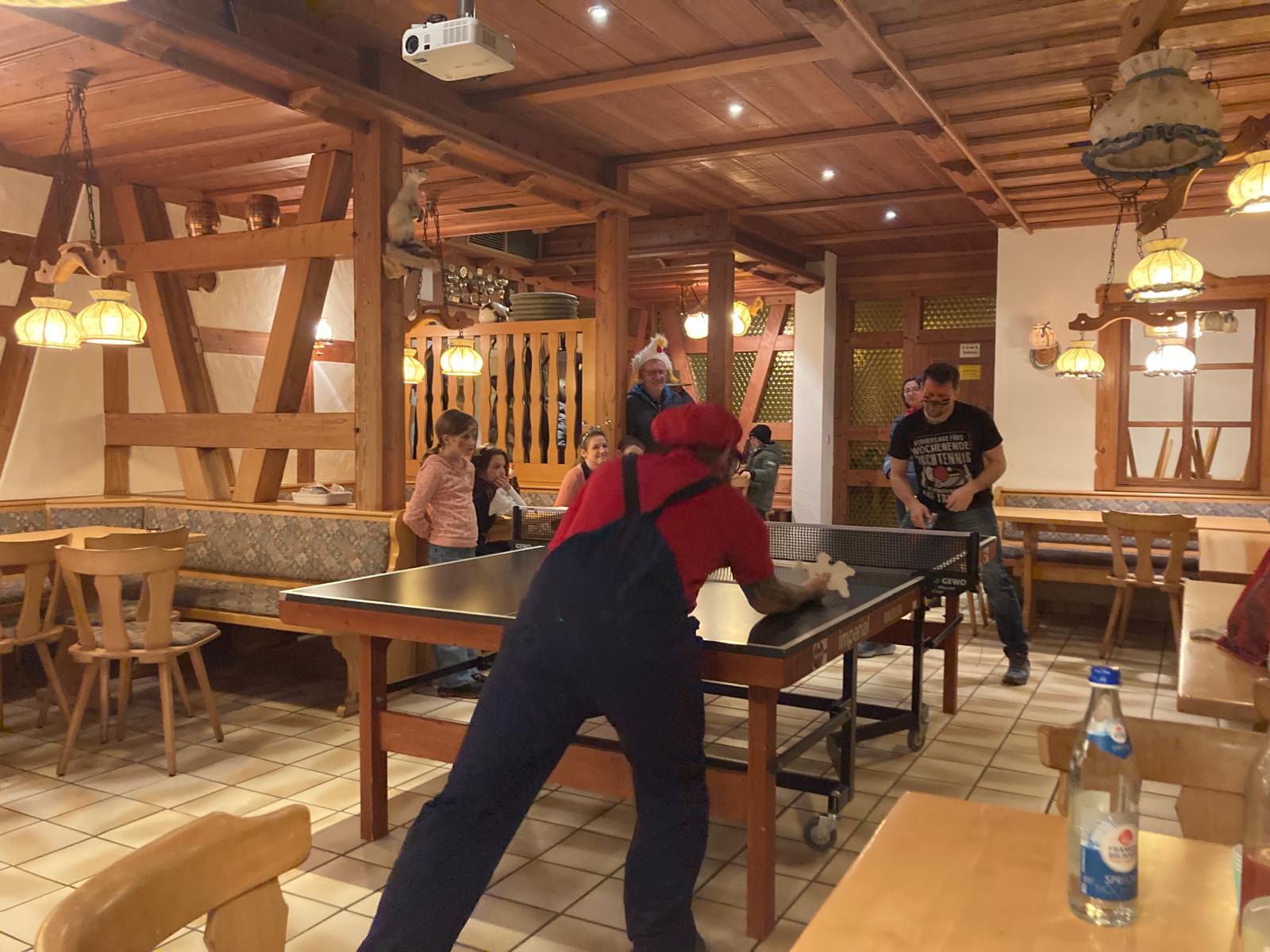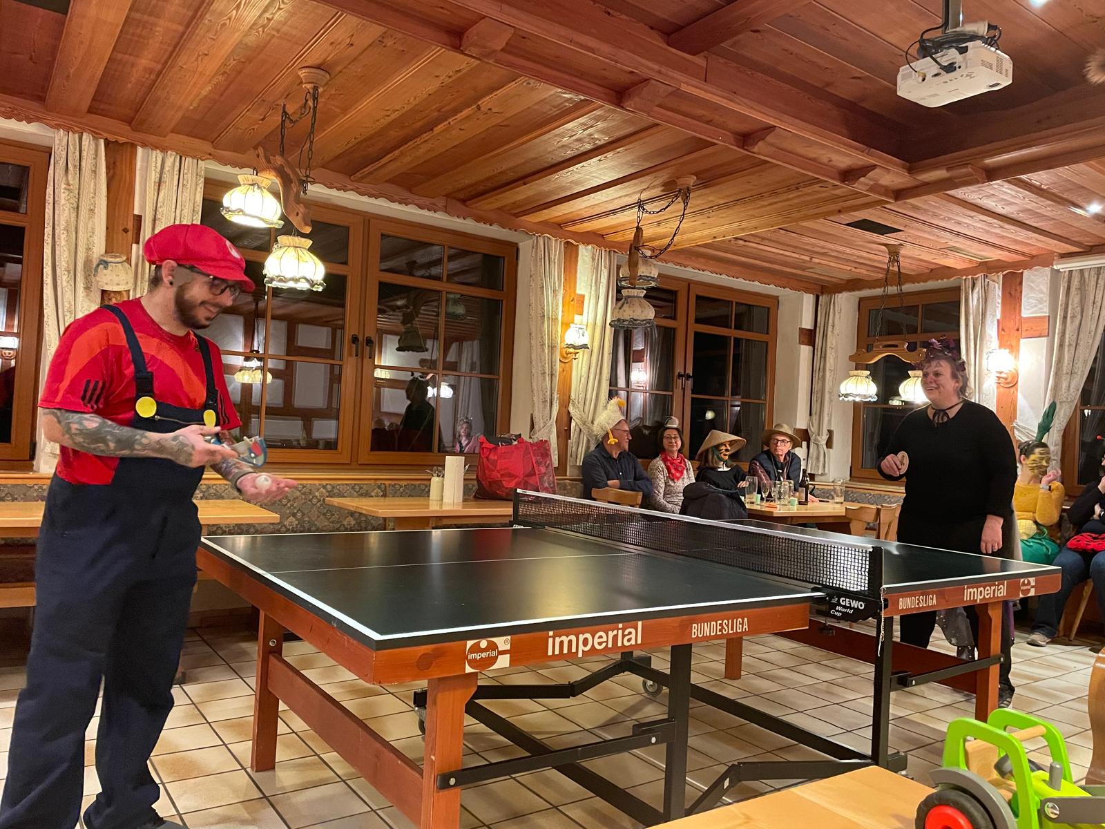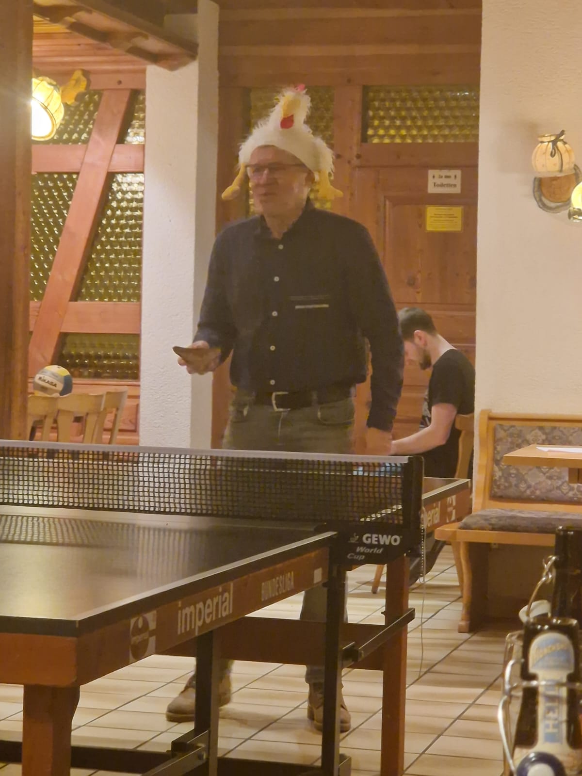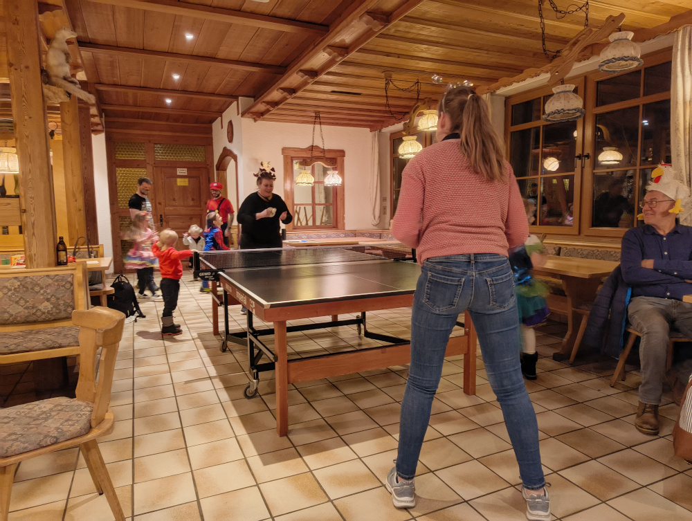 Am Rosenmontag, den 16.02.2026, trafen sich einige Tischtennisspieler in der ASV-Sportgaststätte zum traditionellen Faschingstischtennis. Los ging es auch in diesem Jahr bereits um 17 Uhr. In lockerer Atmosphäre wurde Pizza gegessen und Tischtennis gespielt. Allerdings, wie in jedem Jahr, nicht mit einem Tischtennisschläger, sondern mit irgendwelchen mitgebrachten Gegenständen. So sah man z. B. einen Volleyball, ein Kissen, ein Bierfilzla, einen Geldbeutel und noch einiges mehr.
