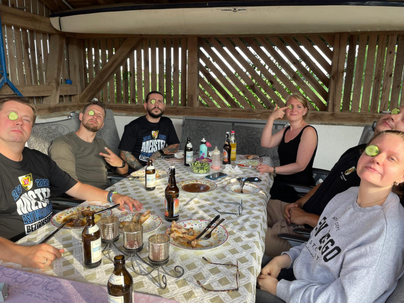 Am Freitagabend ließen sich die ca. 20 Feierenden auch vom teilweise durchwachsenen Wetter nicht davon abhalten, eine erfolgreiche Saison angemessen zu zelebrieren. Bevor es gegen 18 Uhr Essen von der Metzgerei Jacob gab, wurde Kettcar gefahren, Cornhole und Flunky Ball gespielt. Beim Abendessen selbst gab es neben leckerem Essen und guter Unterhaltung auch einen kleinen Beautyteil mit Gurkenscheiben auf den Augen. Das Spielzeug des Abends war das Kettcar, welches zwar theoretisch für eine Person gedacht ist, von den Kindern aber meist zu viert gefahren wurde, so musste man sich weniger abwechseln^^. Im weiteren Verlauf wurde dann noch ein bisschen Dart, Dosenstechen und ähnlicher Schabernack gespielt. Aber da Bilder mehr als Worte sagen, hier ein paar Eindrücke der Feier. Ich bedanke mich bei allen die gekommen sind und freue mich auf viele weitere Saisons und die dazugehörigen Abschlussfeiern😊