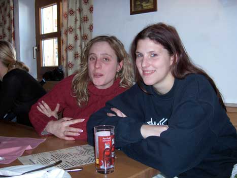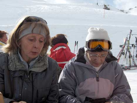 Ulrike und Regine freuen sich auf einen sonnigen Skitag.