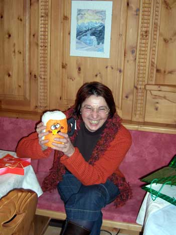 Anita hatte Geburtstag und freute sich über ihr kleines Geschenk - ein sprechender Bierkrug.