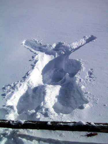 Rätselhafte Spuren im Schnee! Wer könnte sich da ausgeruht haben?