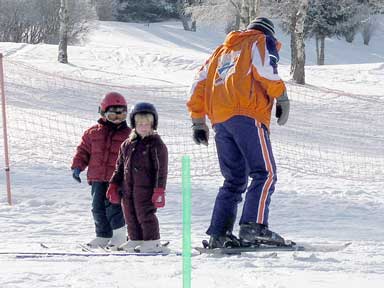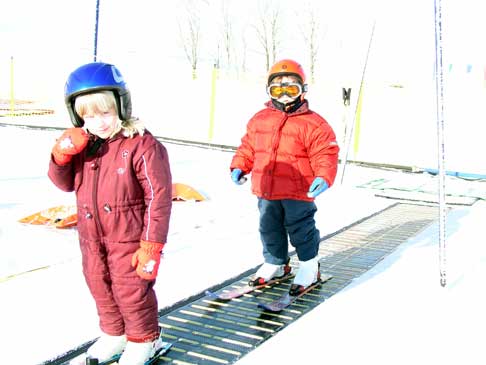 Unsere jüngsten Skifahrer: Jennifer und Clairmont fahren mit dem "Fließband" nach oben.