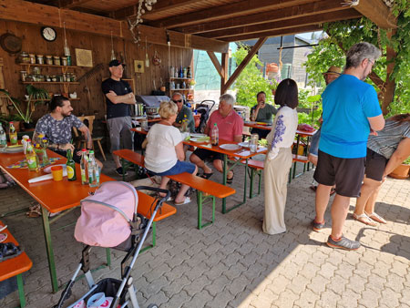 Da unsere Spielerinnen und Spieler immer mehr Nachwuchs haben, begannen wir schon um 11:00 Uhr mit einem Weißwurstessen und mit einem reichhaltigen Buffet. Im Garten von Roland wurden für die Kleinen zwei Planschbecken aufgestellt, die einen regen Zuspruch fanden.