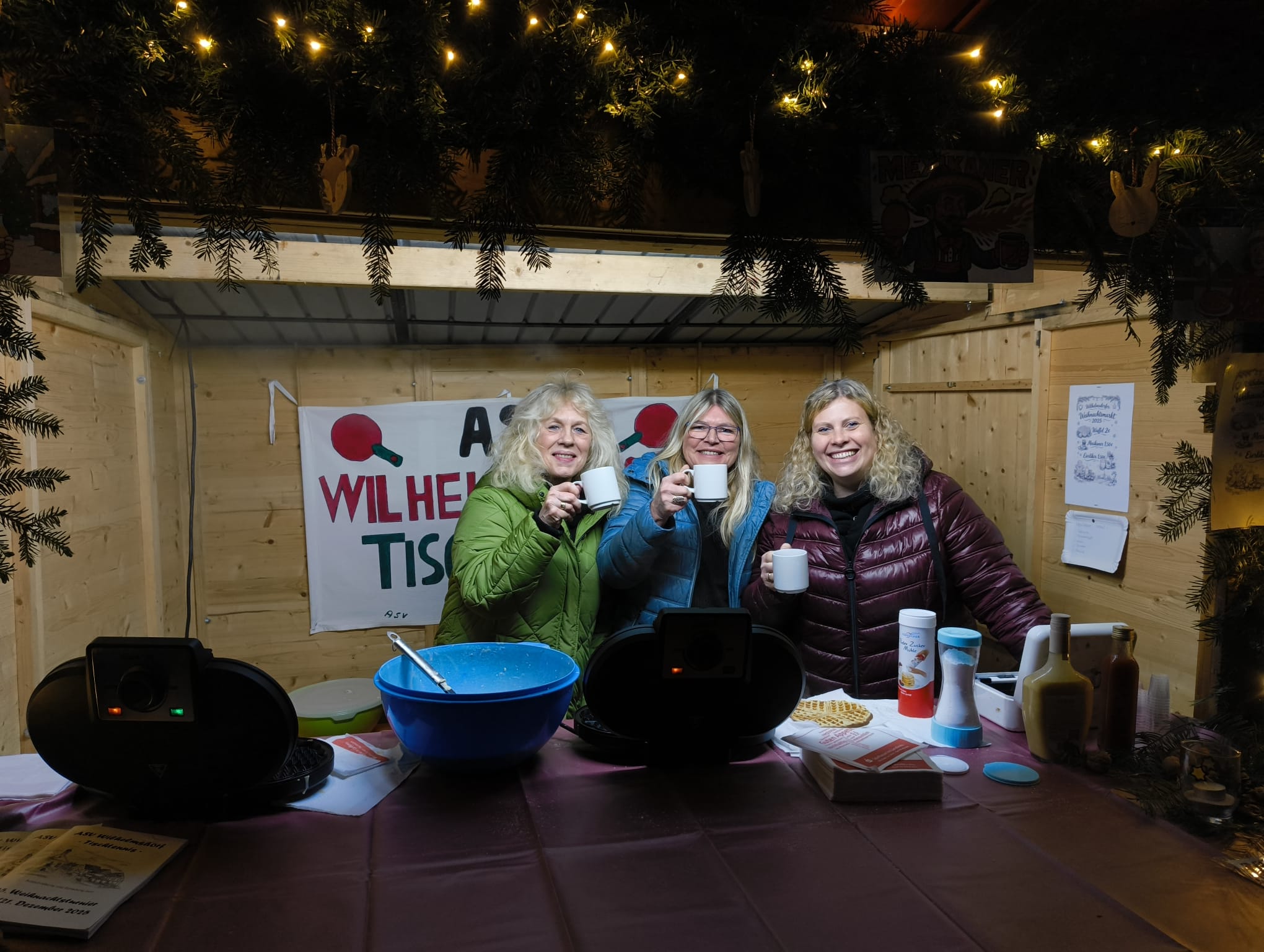 Auch wir vom Tischtennisverein beteiligten uns mit einer Verkaufsbude, an der Waffeln verkauft wurden (2 € pro Waffel). Zusätzlich gab es Eierlikör und selbstgemachten Mexikaner als alkoholische Shots zu je 1,50 €.